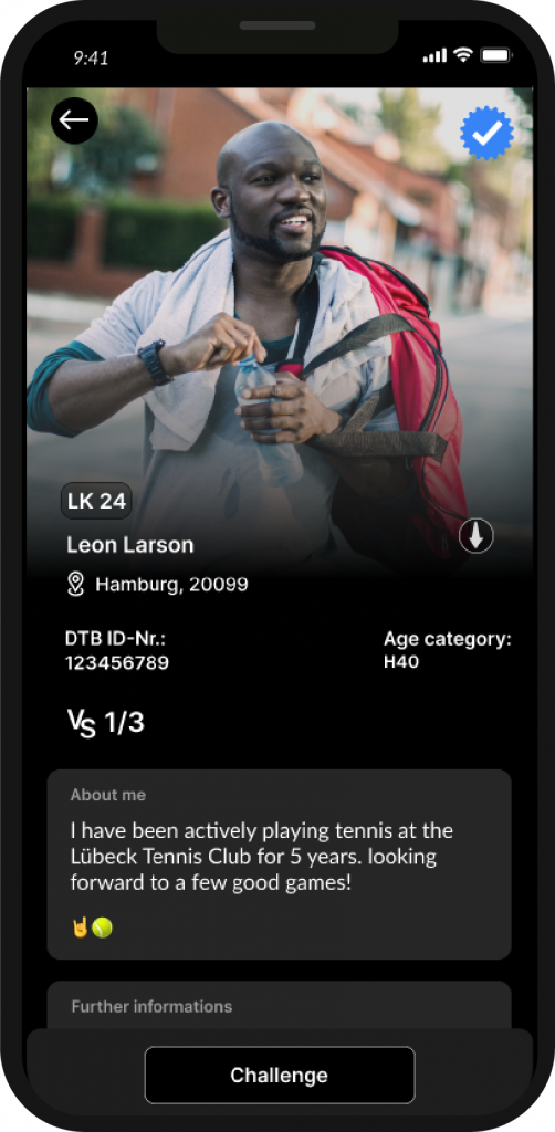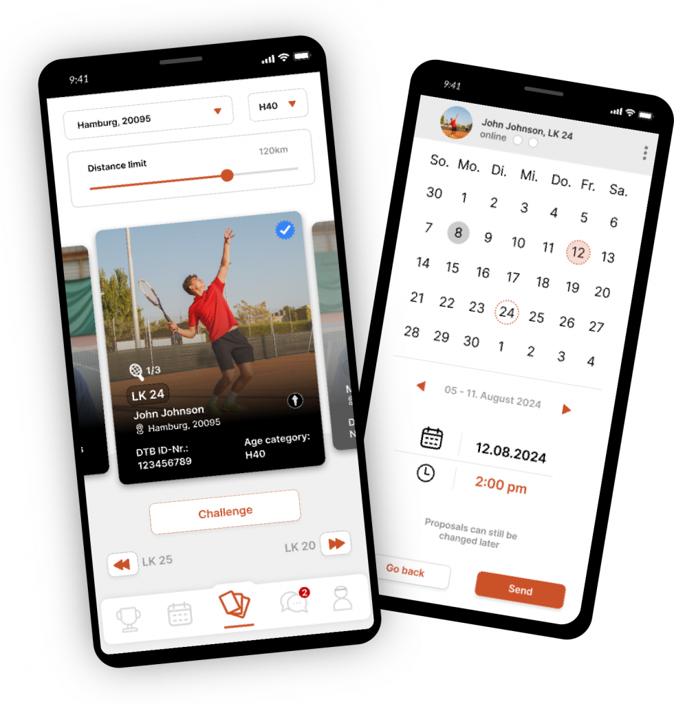 Mit der TennisFinder App findest du ganz einfach Tennispartner in deinem Verein oder in der Nähe, die du herausfordern kannst.